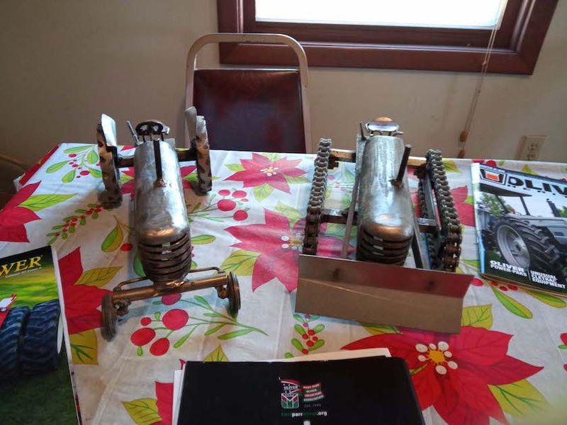 Brothers Don and Dave are tractor restorers with more than 200 in their collection. While tinkering in his workshop, Bruce took some scrap metal and made small replicas of a crawler and tractor they working on, as a Christmas present.