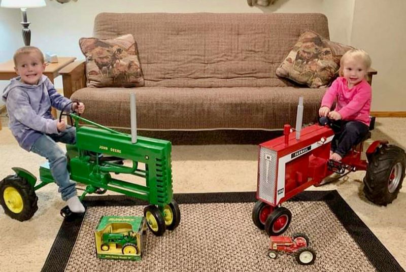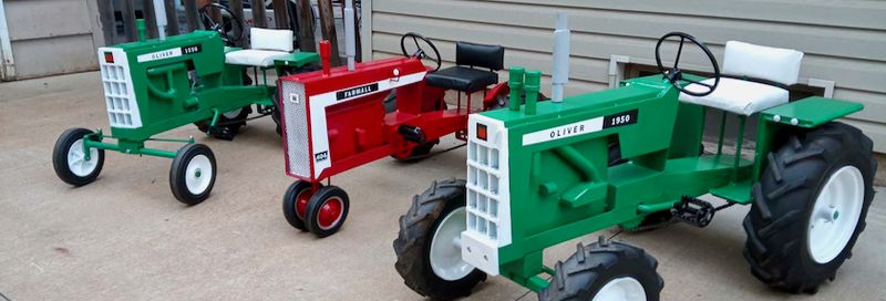 Although these are kiddie tractors, the adults get a big kick of riding them as well (and maybe reluctantly let children and grandchildren play with them).