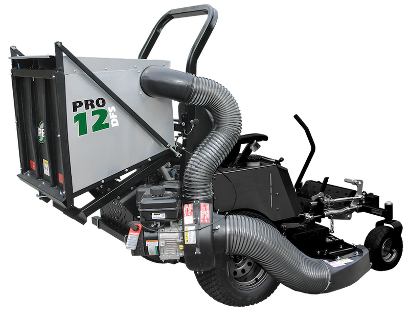 The PECO Pro 12DFS (Dump From Seat) debris collection system features a heavy-duty, mounted aluminum box that easily dumps from the operator’s seat. With nearly10 bushels of capacity, the Pro 12DFS will increase your productivity, whatever your application. Its rugged construction will give you many years of reliable service. Powered by PECO's patented mid-mounted blower, it has the power to handle today’s high output commercial decks.
