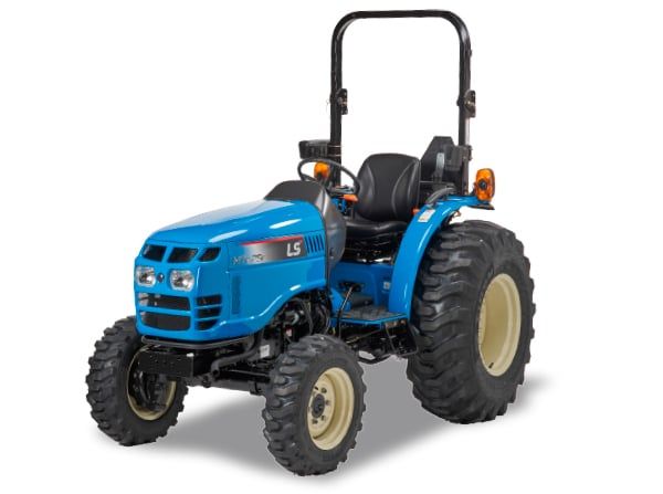 LS Tractor’s 24.6 hp MT2E Series enjoy 12 forward, 12 reverse synchro shuttle transmission or a three range, dual pedal, hydrostatic transmission with cruise control. Foldable ROPS, a seat safety switch, seat belt, safety flashers, and a solid fender-mounted hand grip make work more pleasant, while additional comfort features include a cupholder, toolbox, pre-heat starting aid, front-wheel mechanical assist 4WD, and hydraulic position control. Easy-attaching implements include loader, backhoe, and snowblower options. All LS Tractors come with a choice of ag, industrial, or turf tires.