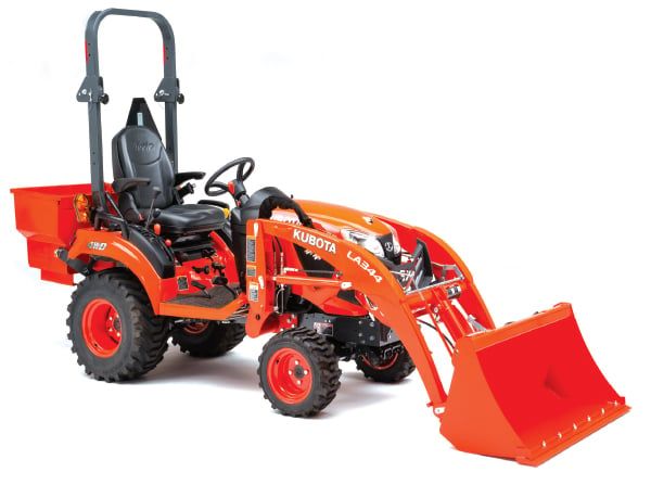 Kubota’s BX80-Series of subcompact 4WD diesel tractors comprises the BX1880, BX2380, BX2680 and BX23S, which leads the subcompact tractor class as a standard-equipped loader-backhoe unit. The BX80-Series’ four tractor models range in power from 16.6 hp to 24.8 hp. The BX80-Series maintains owner-friendly versatility with attachments and implements for any job, including mid-mount mower decks, Swift-Tach front loaders, front- and rear-mounted snowblowers, and a full line of Land Pride implements. ROPS raises and lowers to clear garage doors.