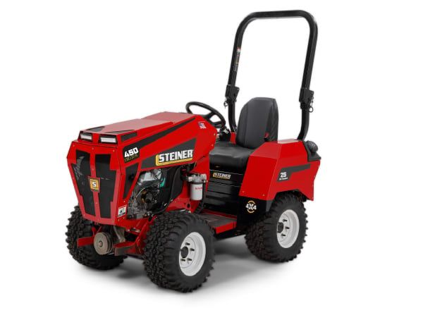 Steiner took a look at how homeowners use their small tractors and created this model in the mold of their successful, highly maneuverable turf care equipment. The new 25-hp air-cooled Steiner 450DX is an all-around workhorse for homeowners who mow, blow, plow, or dig. Steiner’s unique oscillating frame and articulated power steering give true four-wheel traction, and ability to work on slopes up to 30 degrees when equipped with optional dual tires. More than 20 professional-grade attachments give the 450DX surprising versatility.