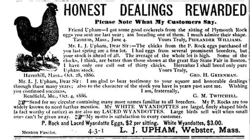 These chickens were first recognized as a breed in Massachusetts in 1849—then, they just mysteriously disappeared for about 20 years. Finally, around 1869, a Mr. L.J. Upham of Worcester, Massachusetts began breeding barred males and Java hens in the attempt to create a breed with a lovely barred plumage and clean legs. As a result, Mr. Upham’s birds have become known as the ancestors of today’s Plymouth Rock.
