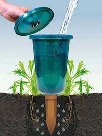 The Hydro Cup watering system provides water directly to plant roots. Pour water into the 2.5-liter Hydro Cup, and the water will gently seep through the terracotta stake stuck into the soil. This slow and steady release of water will keep the soil from drying out for approximately 10-15 days (depending on weather conditions). The Hydro Cup is perfect for growing tomatoes, peppers and other vegetable plants in raised beds or containers. A set of four Hydro Cups with terracotta stakes sells for $69.99 from biogreen-products.com.