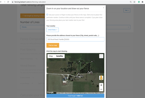 Determining how much fencing material you need is a critical step. To map out your fence and create an all-encompassing supply list, Sarson recommends Bekaert’s Fencing Calculator, a free online tool based On Google Earth. (fencing.bekaert.com/en/fencing-calculator)