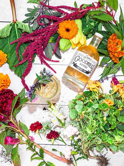 Simple Goodness Sisters grows, harvests, and formulates syrups seasonally, usually in the summer. Check their website for availability, as some are held back for their Cocktail Farm Club subscription service.