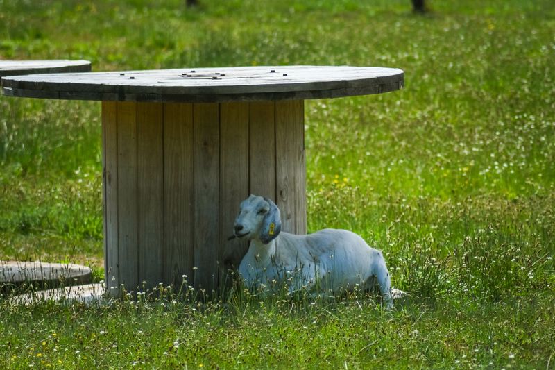 Some goats can also be sheared as a heat-moderating method. Since we know that goats love to climb, placing big blocks of ice around their run gives them a way to look cool and be cool at the same time. And like dogs, goats love splashing around in wading pools. Goats are also grain-eating animals, so it is important to limit their grain intake to the cooler parts of the day because adding grain to their food is like adding coal to a stove; it raises their body temperature.