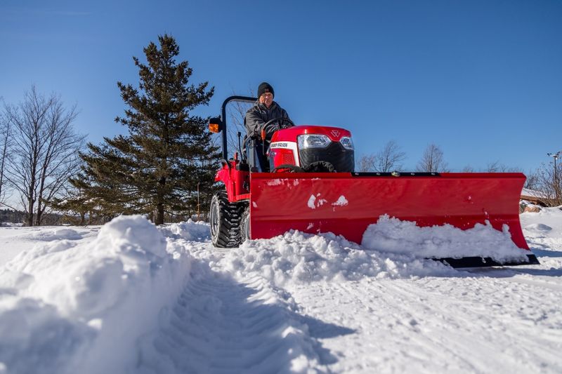 Make sure your snow-clearing attachment matches the size and horsepower of your tractor. Front-mounted snow blowers are great for deep, heavy snow, while loader buckets or blades are ideal for lighter jobs or quick clearing. If you’re using a loader bucket, keep it slightly above the ground to avoid scraping pavement or hitting unseen obstacles.