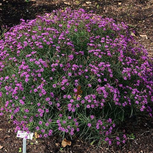 Even among late-flowering plants, this is a late-late-flowering plant. Ironweed gets covered in small purple flowers in early- to mid-fall. The nectar-rich blossoms attract bees and monarch butterflies. Ironweed gets its name from the toughness of its stems, which can feel like iron when you are trying to prune it.