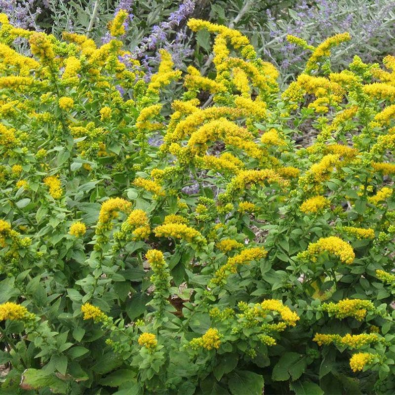 Goldenrod doesn’t need much water, so it’s a great choice for those sunny spots in the drier areas of your garden. Most species grow 3-5 feet tall. But HighCountryGardens.com sells a smaller variety called Golden Fleece Goldenrod that only grows 15 inches tall and 24 inches wide. Use this small variety at the front of a flower garden.
