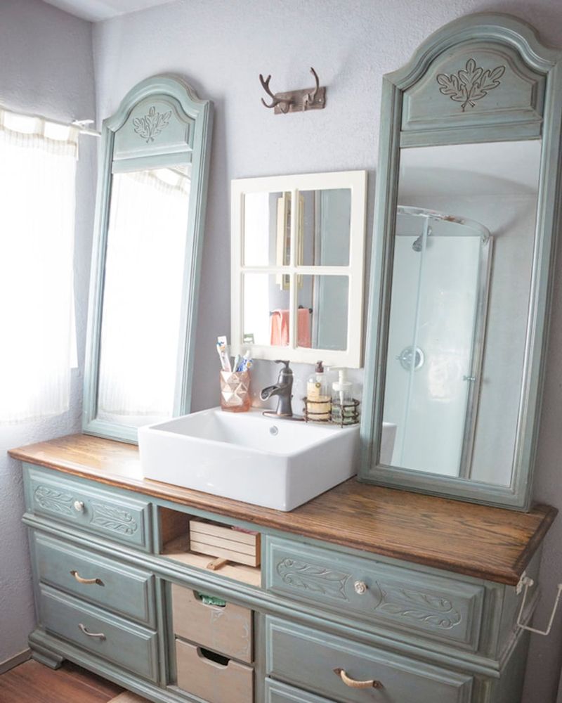 Larger items really can hit a home run. I helped an old dresser find its new home (and identity) in our guest bathroom as a cool, hip vanity.