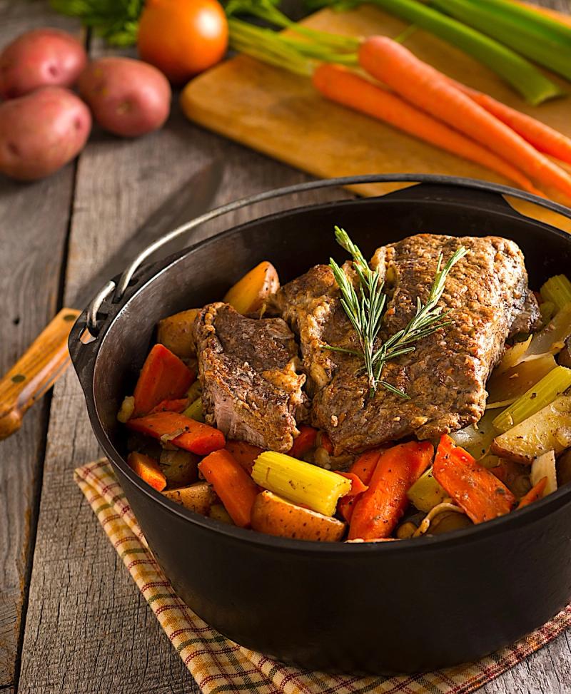 In addition to a few flavor-boosting spices and ingredients, this is a money saver, using lower quality chuck roast. All-day cooking produces tender, juicy meat and the vegetables become a lush, flavorful sauce.