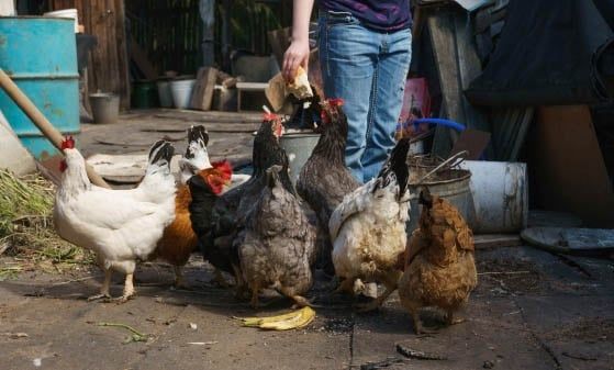 Chicken are great food recyclers. If you let them, they will often eat all of the breakfast, lunch, and dinner that you don't finish. This can be tricky, because food scraps, treats, and snacks shouldn't be more than 10% of their daily food intake. However, the more of your kitchen waste you chickens consume, the less waste goes into the landfill.
